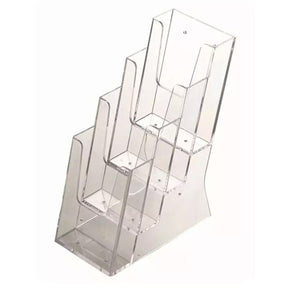 The Acrylic Tiered Desktop Leaflet Holder 1/3 A4 is the smart space-saving solution. With four compartments, this leaflet holder allows you to display multiple different leaflets in the same place. Whatever you wish to showcase, this standing model can be placed anywhere. It's ideal for displaying various types of documents such as catalogs, brochures, maps, and more.